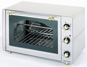 Features: infrared quartz grill, bottom heating element, thermo-ventilator, 4-position switch, timer 120 minutes, thermostat 0-270 ° C, pilot light, reversible grid (4 cooking levels), enamelled plate, inside light, grid holder, spit for rotisserie, protection cover.