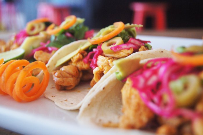- Tacos mexicains : de la viande (généralement de bœuf ou de poulet) cuite avec de la tomate, le tout assaisonné avec du pico de gallo.